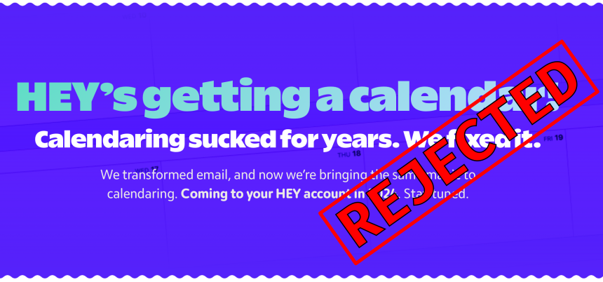 But it looks like what is old is new again as detailed in a blog post by Hey cofounder, David Heinemeier Hanson. Apple has apparently rejected Hey’s new calendar app for very much the same reasons. And in a very similar fashion, Hanson has taken to the internet to pressure Apple into acquiescence.